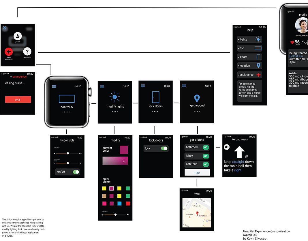 App design based on research for a vision of a Hospital that would allow customers to customize their experience from their wrist. UX played an integral part of the process of bringing the idea to life.